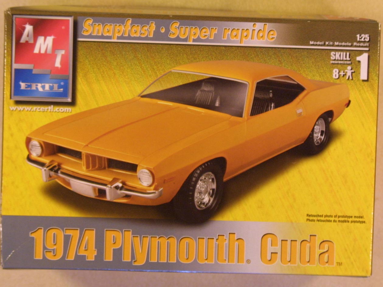 74 Plymouth Baracuda, AMT Ertl, 1:25, 2002, yellow plastic, appears intact,