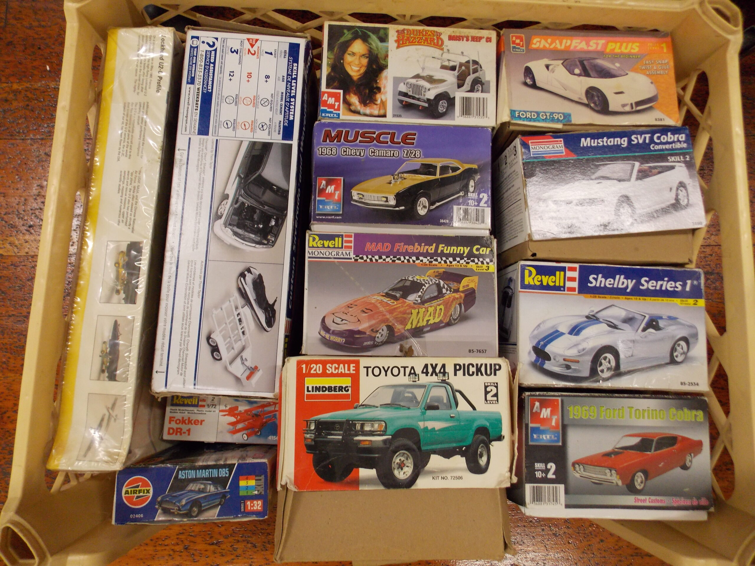 Several dozen plastic model car kits