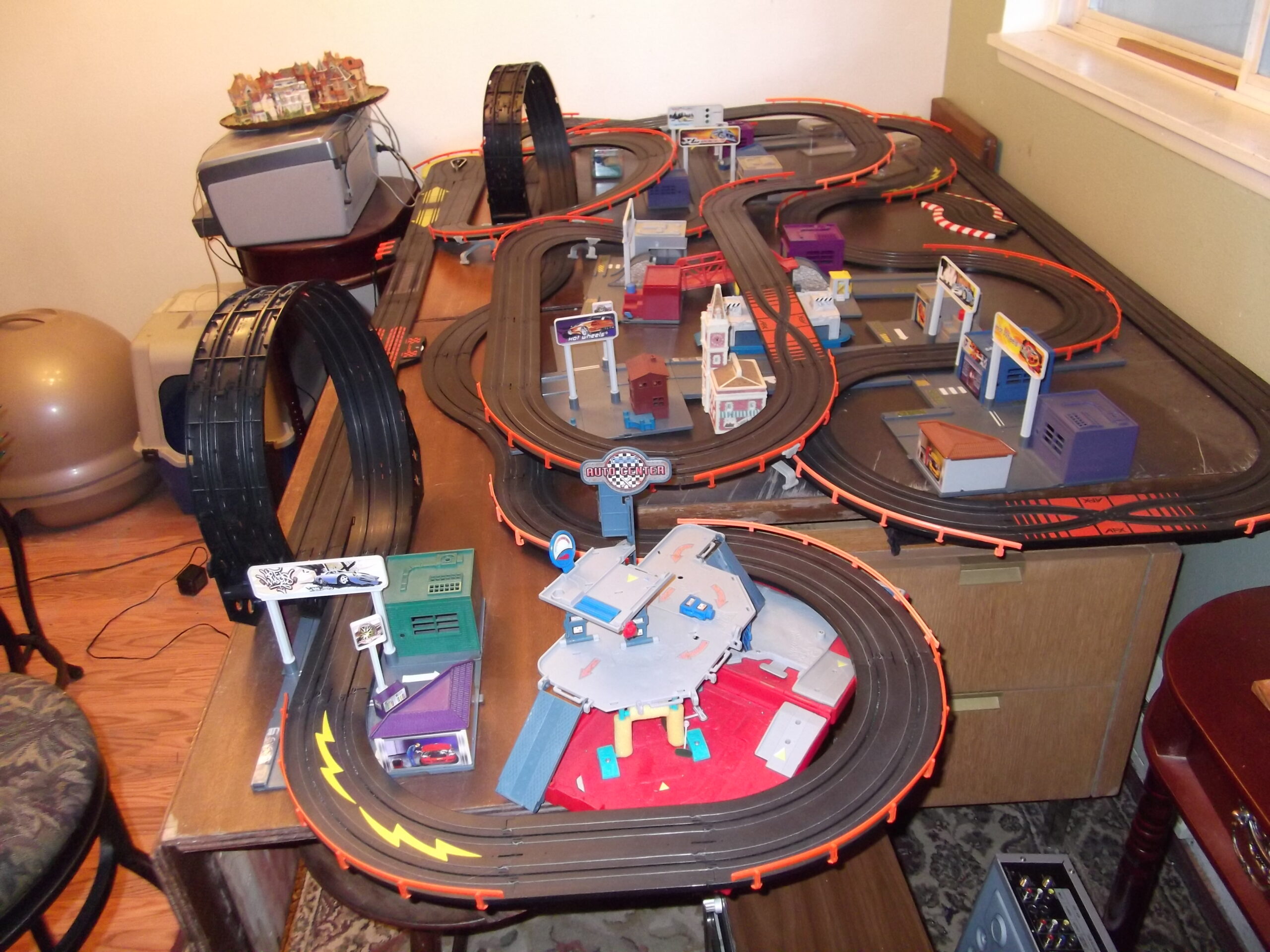 Slot car tracks, cars and accessories